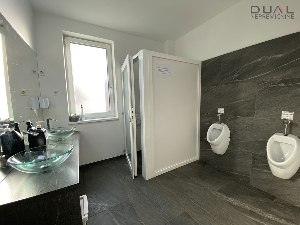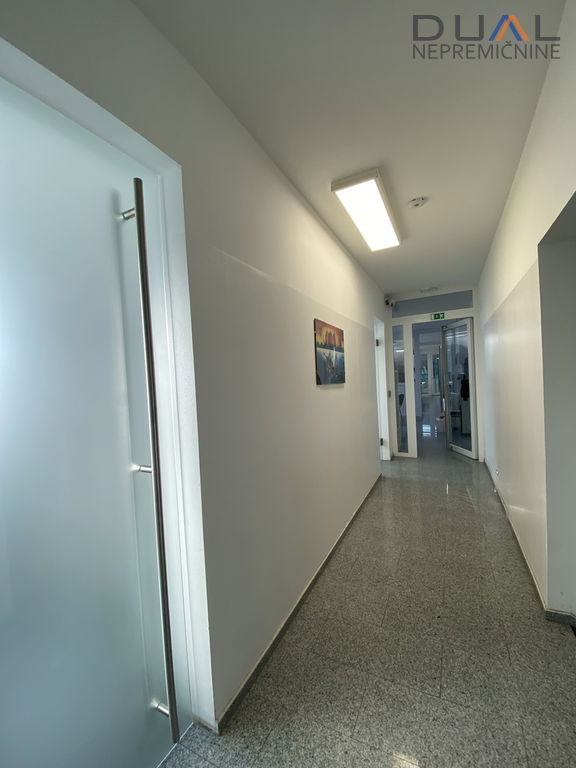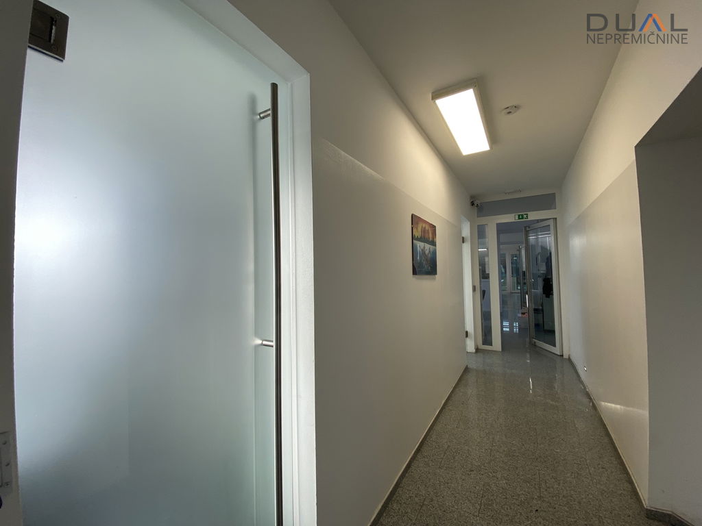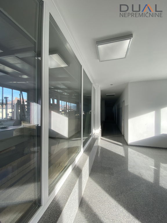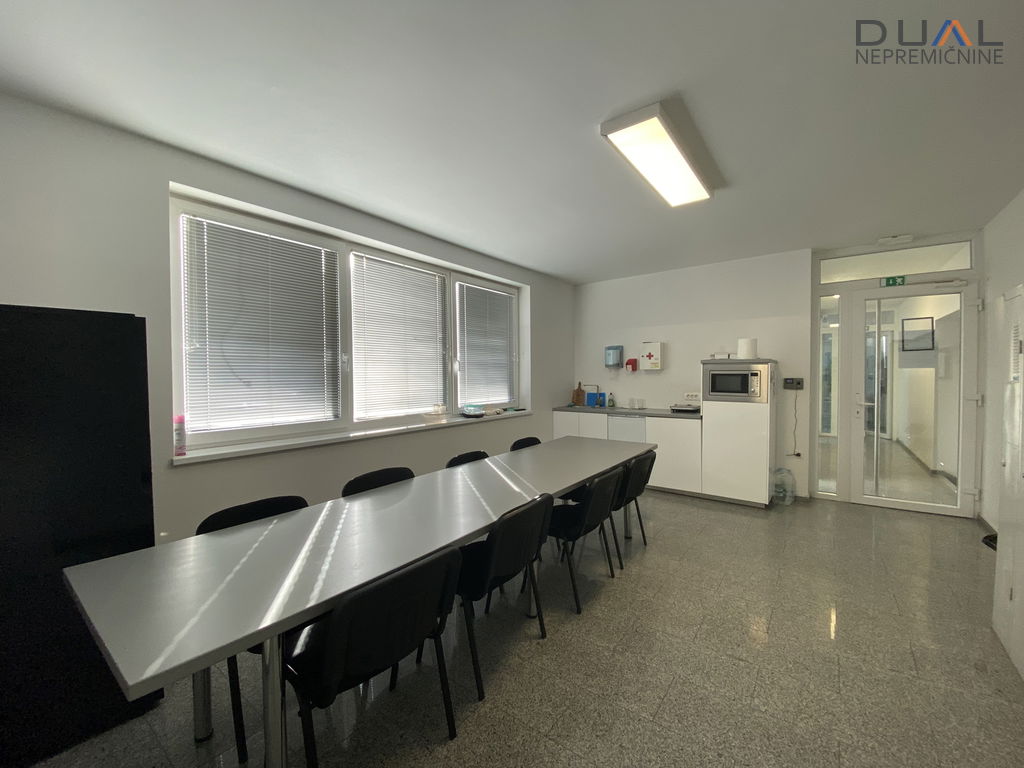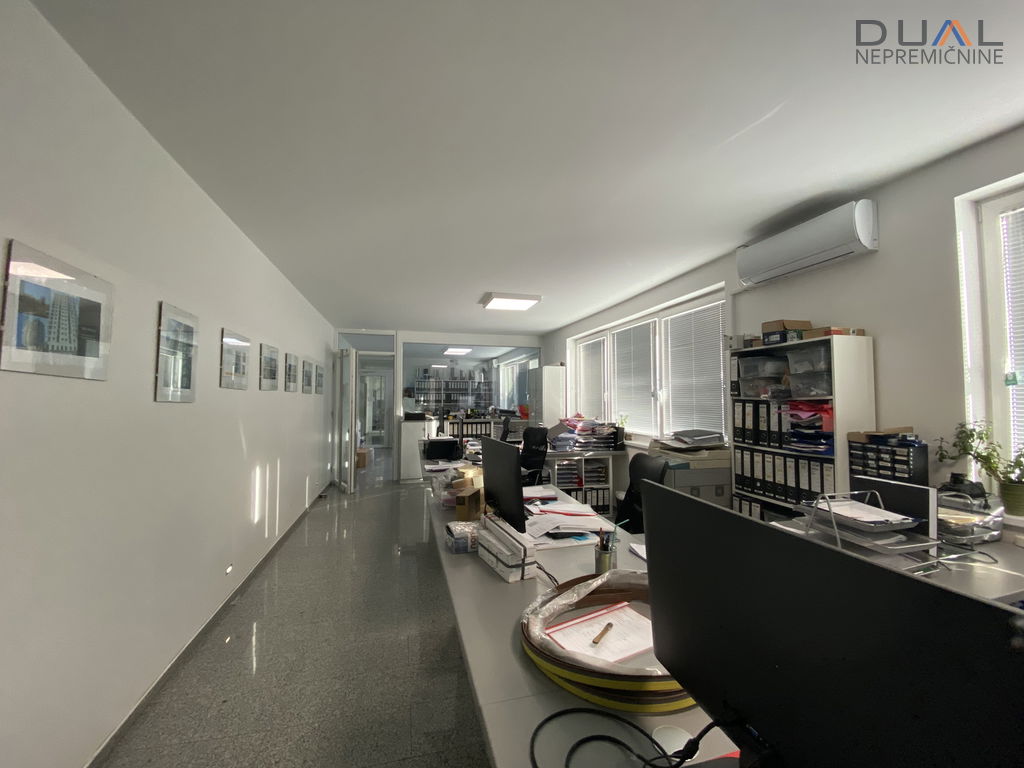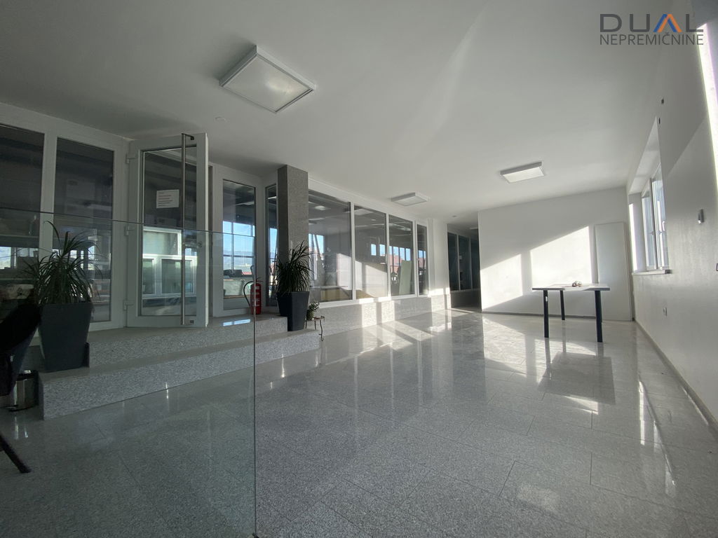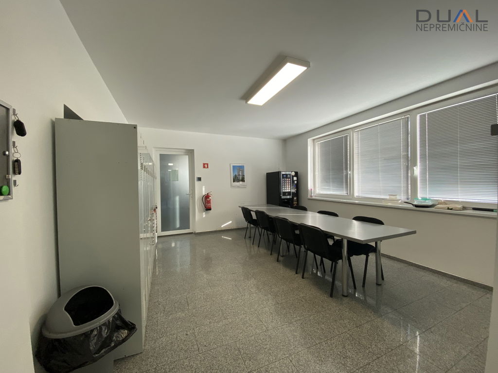 V pritličju je hala v velikosti cca 500m2 z višino 3,2m (dolžina cca 40m in širina cca 12,5m) in pisarniški prostori s sanitarijami ločenimi za moške in ženske. V hali je po tleh kvarc. Dostopna je s strani pisarn in dvojna zunanja dvižna vrata, ena 3,5m širine in druga 7m širine. Pisarniški del je razdeljen na tri velike pisarne in kurilnico. Ogrevanje je urejeno s toplotno črpalko, talno gretje. Hlajenje s konvektorji. V pisarnah hlajenje s klimo.