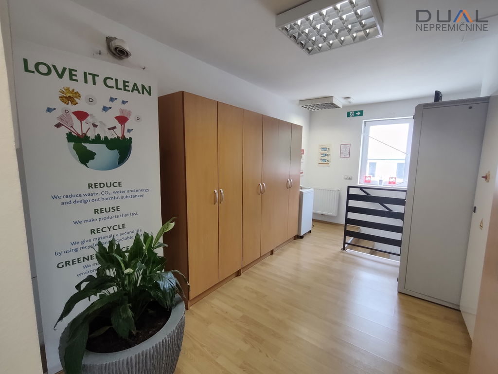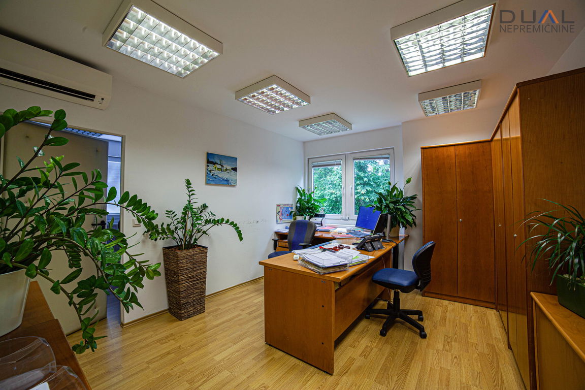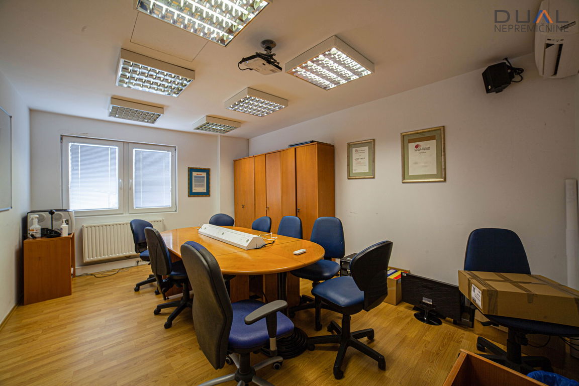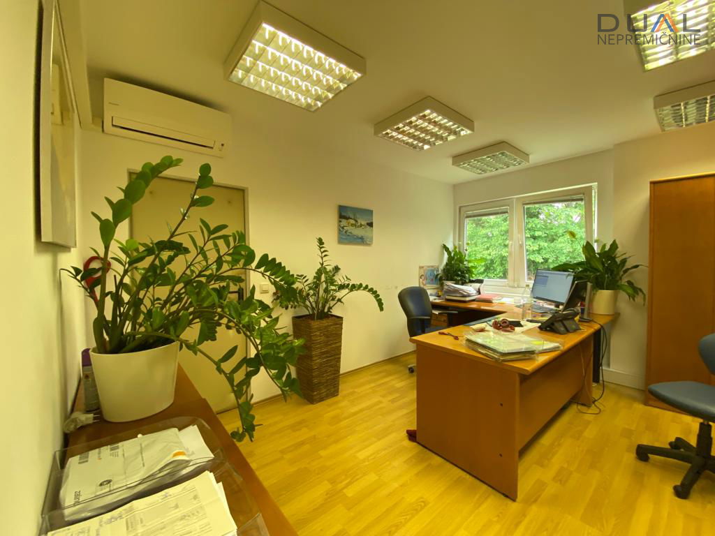 Pisarne so v velikosti 170m2 in trenutno so razdeljene na 9 prostorov, kar pa se po potrebah stranke lahko spremeni. Imajo lastne sanitarije in čajno kuhinjo. Objekt ima alarmni sistem in je pod video nadzorom.